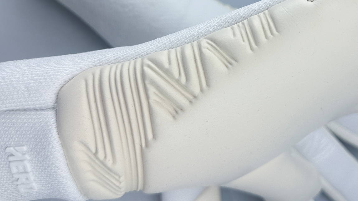 Cut: Full negative cut with one-piece latex inserts between the fingers for a clean, precise, and close-to-the-ball grip. Latex on the outside of the palm increases the contact area for better handling.